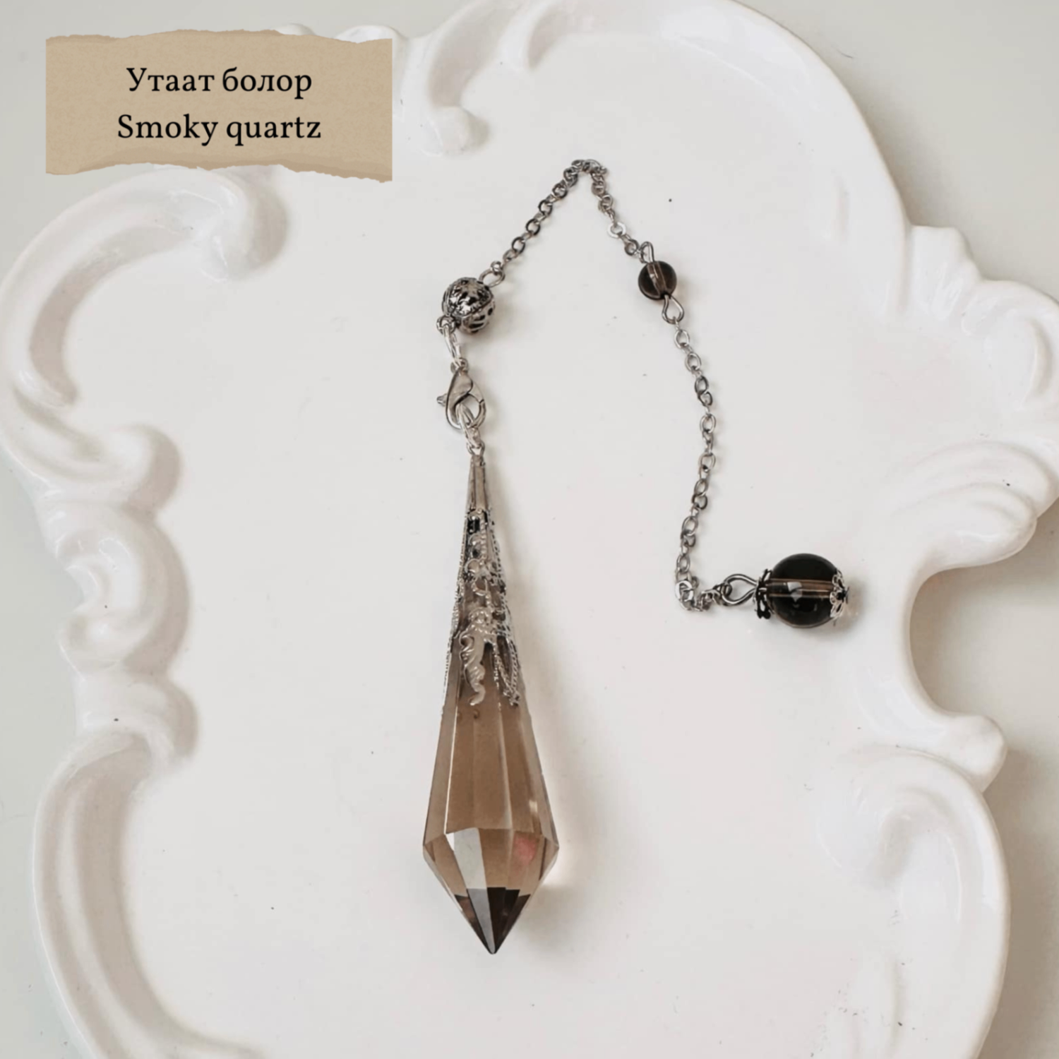 Чулууны урт 5-6см, жижиг чулуун бөмбөлөгийн диаметр 2мм, зүүлтний урт 15см, нийт урт 20см.